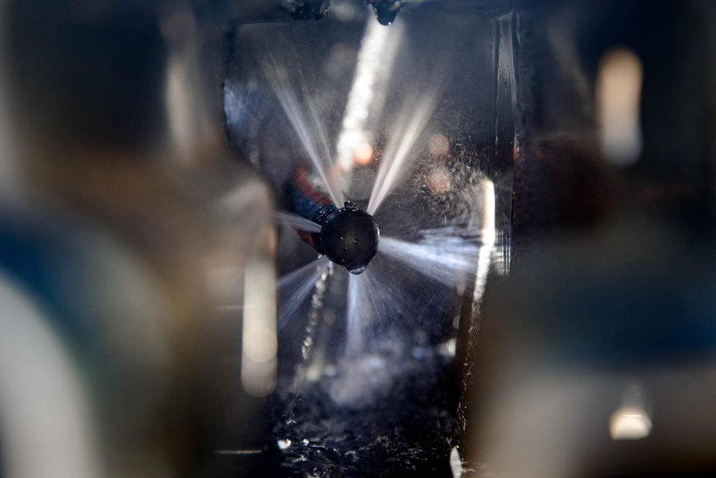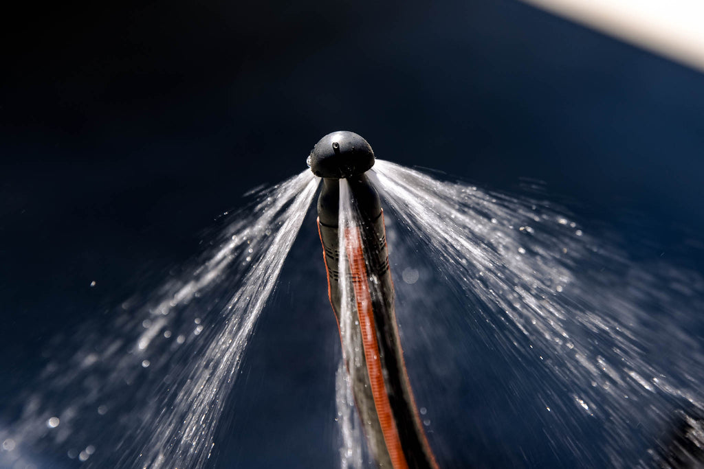 With this design the hose will feed into the chassis with ease and pre soak the internals as its fed down the rails. The angle of the jets will allow the fitting to "hover" between the rails and propel itself along as you feed the hose further in.